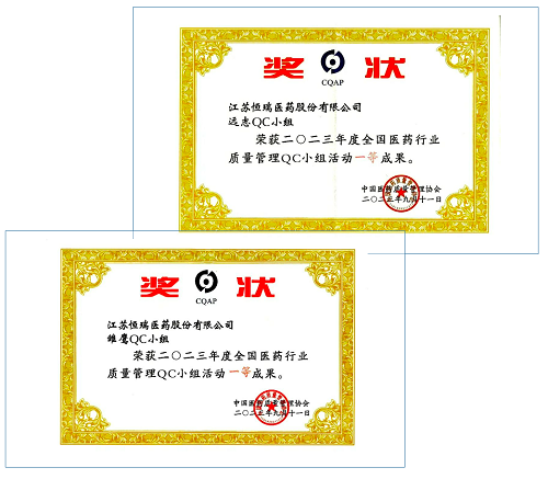 近日,第44次全国医药行业质量管理(QC)小组成果发表交流在甘肃兰州举行。会上,J9九游会医药远志QC小组、雏鹰QC小组荣获2023年度全国医药行业质量管理QC小组活动一等奖。
