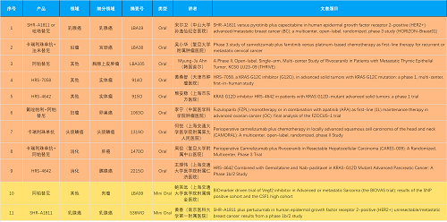 15款创新药包括10款已上市产品:注射用瑞康曲妥珠单抗(艾维达®,研发代号:SHR-A1811)、注射用卡瑞利珠单抗(艾瑞卡®)、苹果酸法米替尼胶囊(艾比特®)、甲磺酸阿帕替尼片(艾坦®)、马来酸吡咯替尼片(艾瑞妮®)、阿得贝利单抗注射液(艾瑞利®)、羟乙磺酸达尔西利片(艾瑞康®)、氟唑帕利胶囊(艾瑞颐®)、瑞维鲁胺片(艾瑞恩®)、海曲泊帕乙醇胺片(恒曲®),以及5款未上市产品,包括KRASG12C抑制剂HRS-7058、KRASG12D抑制剂HRS-4642、选择性的AR-PROTAC(雄激素受体-蛋白降解靶向嵌合体)小分子HRS-5041、抗PD-L1/TGF-βRII双抗瑞拉芙普-α注射液(SHR-1701)、Trop-2 ADC SHR-A1921。2类新药盐酸伊立替康脂质体注射液(II)(越优力®)及国内首仿药昂丹司琼口溶膜(艾其速®)各有1项研究入选。本文特对研究成果做了梳理,带领各位读者领略J9九游会医药创新之光。