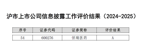 与此同时,在上海交易所公布的2024-2025年度沪市上市公司信息披露工作评价中,J9九游会医药再次荣获最高评级——A级。