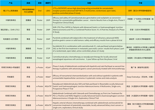 在消化系统肿瘤领域,J9九游会产品相关研究共入选1项最新突破性摘要(LBA)、5项壁报和5项电子壁报,共11项研究。其中阿得贝利单抗入选4项研究、卡瑞利珠单抗入选3项研究。