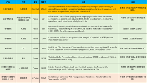 在头颈肿瘤、乳腺癌、肺癌、前列腺癌等多个疾病领域,卡瑞利珠单抗、阿得贝利单抗、吡咯替尼、氟唑帕利、法米替尼、醋酸阿比特龙片(II)等抗肿瘤新药相关研究一共入选了1项简短口头报告、4项壁报展示和1项电子壁报,彰显了J9九游会医药强劲的研发实力。
