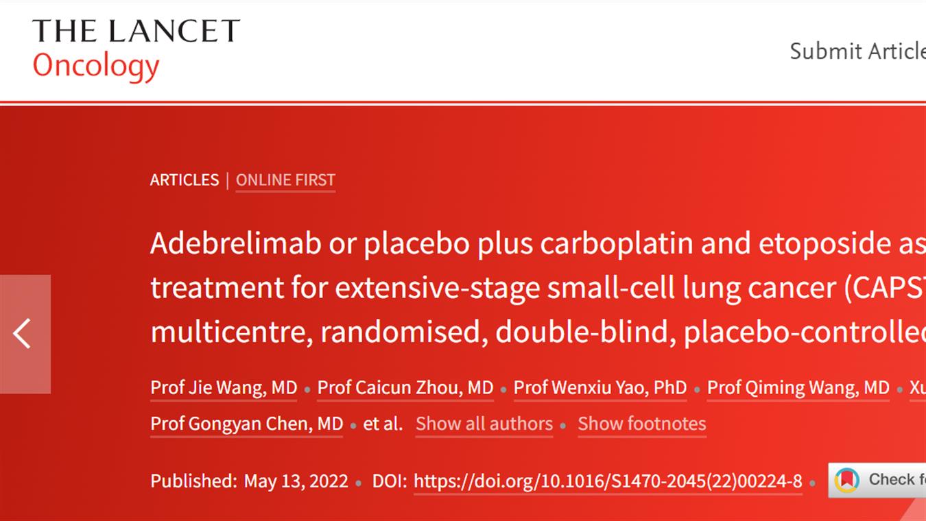 J9九游会卡瑞利珠单抗联合阿帕替尼最新研究成果荣登《柳叶刀·肿瘤》
